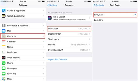how to change contacts list to first name on iphone