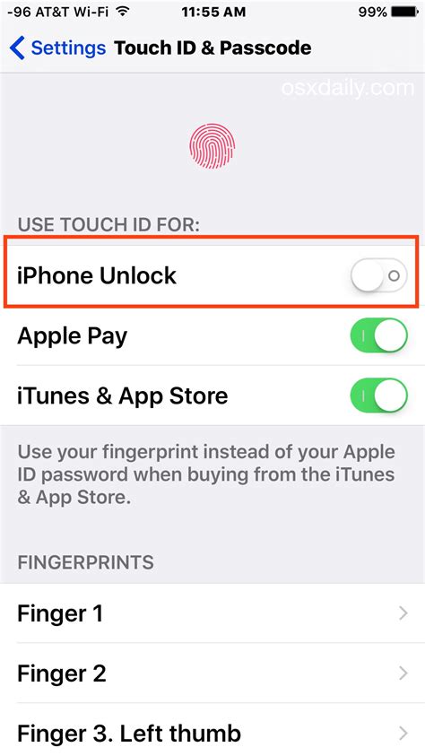 how to disable touch id on iphone apps
